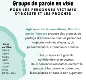 - Groupe de parole pour les victimes d’inceste et leurs proches (en visio)